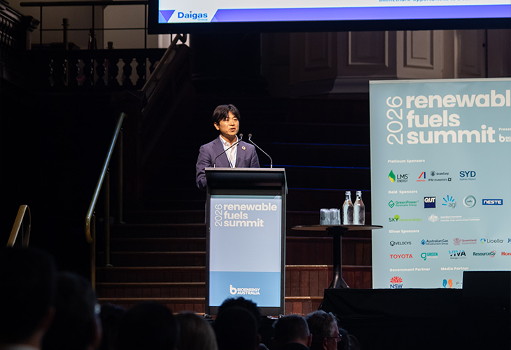 Following Mike’s speech, Tsuguhito Takenaka detailed Osaka Gas Australia’s strategic direction and footprint in Australia, including its expansion from LNG projects into low-carbon initiatives (such as biomethane), in line with the Daigas Group’s global decarbonisation strategy. He also explained how Osaka Gas Australia is actively developing biomethane projects focused on domestic supply, applying Group expertise in close collaboration with Optimal Renewable Gas.